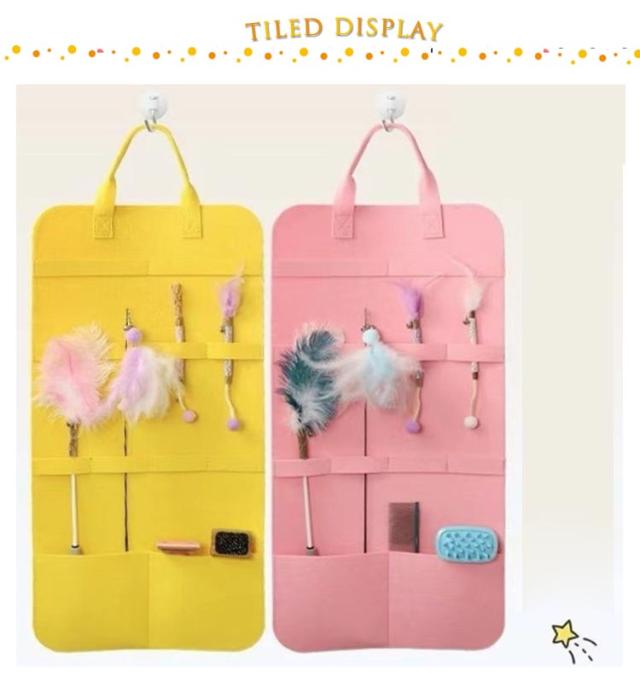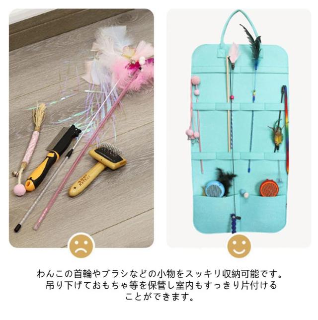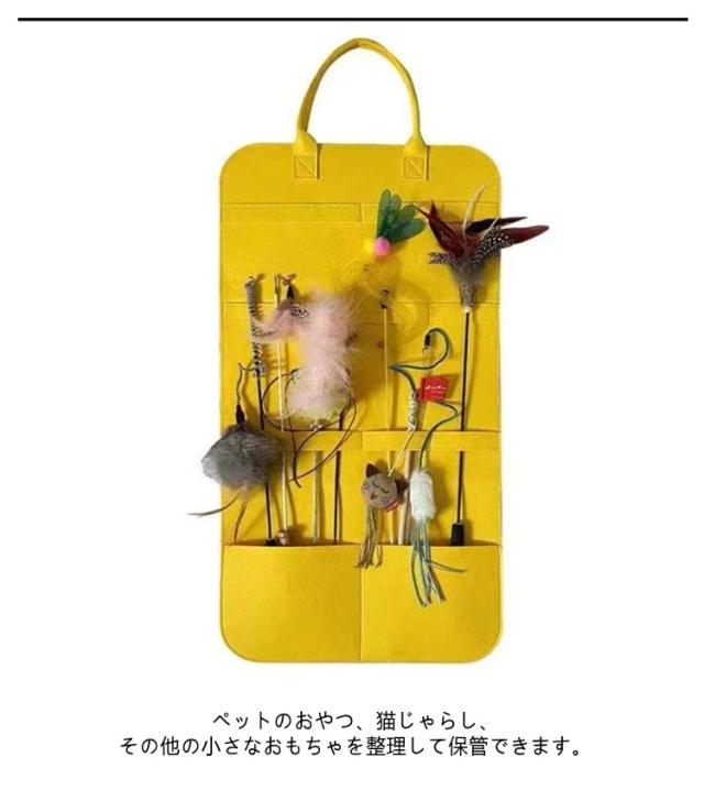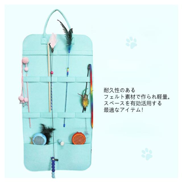 | 細かい小物を壁面に収納できるウォールポケットです。 ペットのおやつ、猫じゃらし、その他の小さなおもちゃを整理して保管できます。 深さのあるポケットだから長い猫じゃらしもスッキリ収納できて、飼い主さんのお悩みも解消してくれます! わんこの首輪やブラシなどの小物をスッキリ収納可能です。 吊り下げておもちゃ等を保管し室内もすっきり片付けることができます。 耐久性のあるフェルト素材で作られ軽量。スペースを有効活用する最適なアイテム! | |