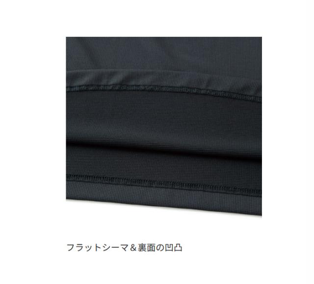 フラットな表面と高い嵩高性を持つDelta 構造と、はっ水糸「CARAT 」を使用したドライ層により、吸い込んだ汗が肌面に戻るのを抑える高機能素材を採用。