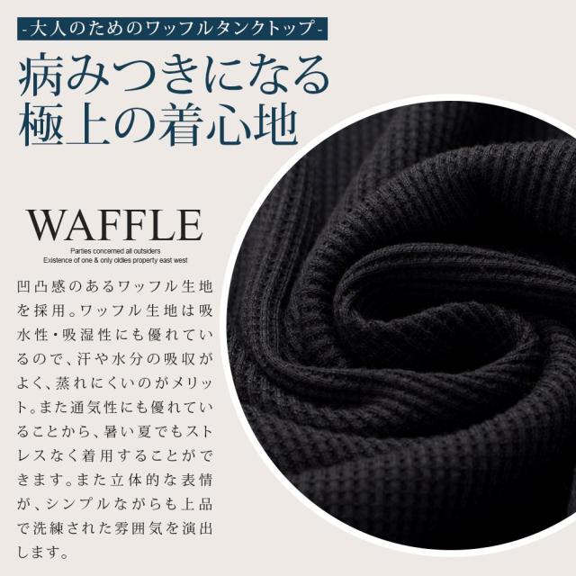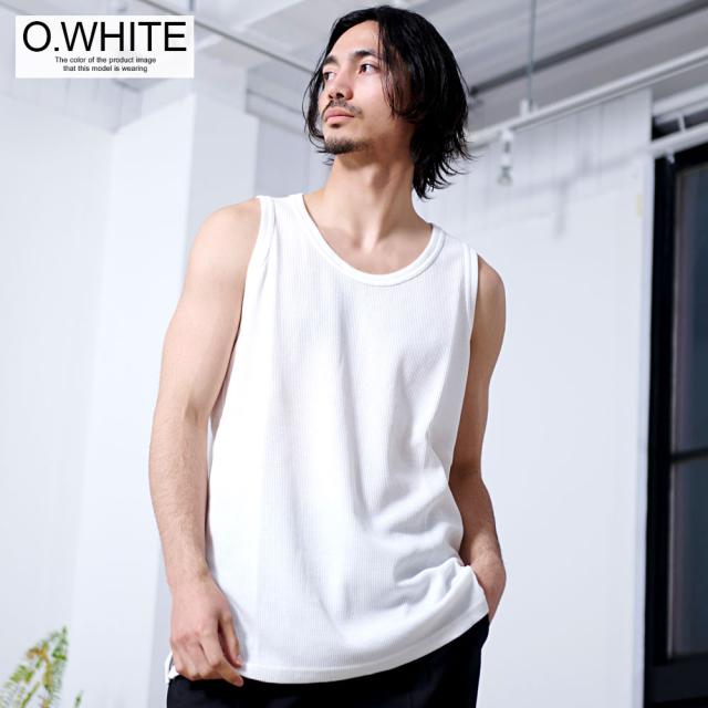 タンクトップ メンズ おしゃれ トレーニング 筋トレ ワッフル サーマル ノースリーブ 無地 ロング丈 スリット レイヤード 重ね着 インナー クルーネック ストレッチ 伸縮 スリム ホワイト 白 黒 M L XL LL 大人 男性 大人 20代 30代 40代 男性 男 服 春 夏 [WF2841]