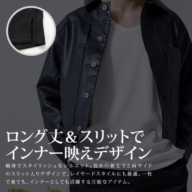 長めの着丈でと両サイドのスリット入りデザインで、レイヤードスタイルにも最適。