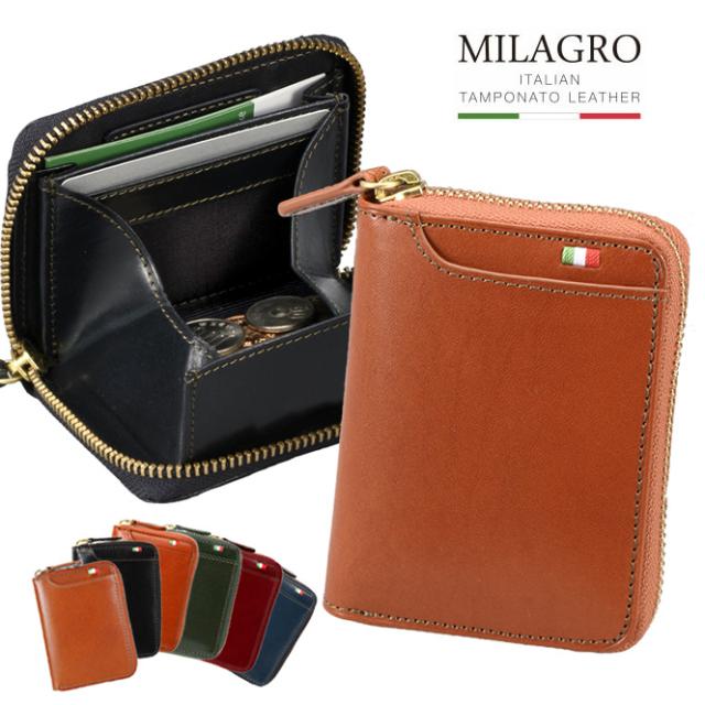 大容量 小銭入れ コインケース ボックス ICカードポケット付き メンズ レディース 財布 本革 イタリアンレザー カードケース 収納 コンパクト 小型 薄い MILAGRO 財布 2つ折り カード収納 スーツ 仕事用 一粒万倍日 おしゃれ ポイント消化