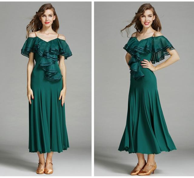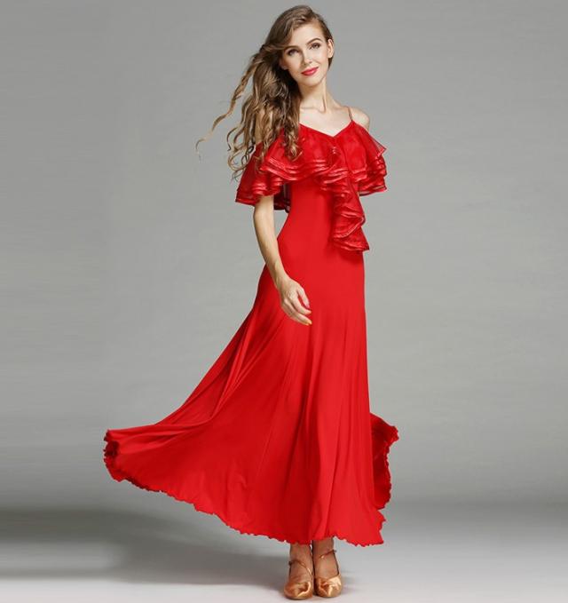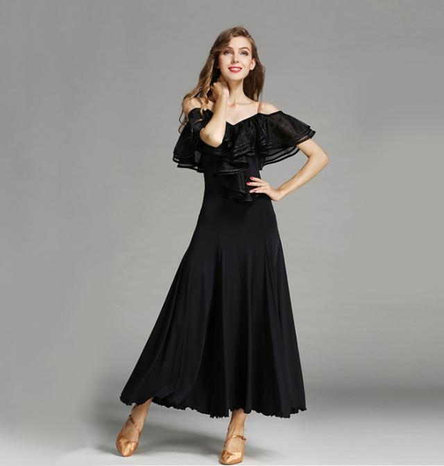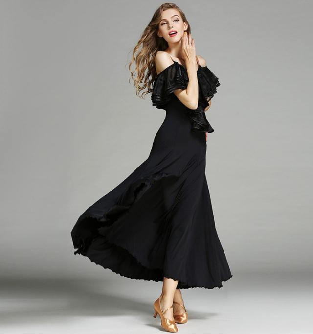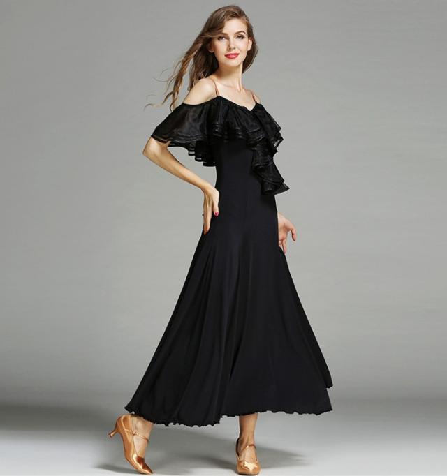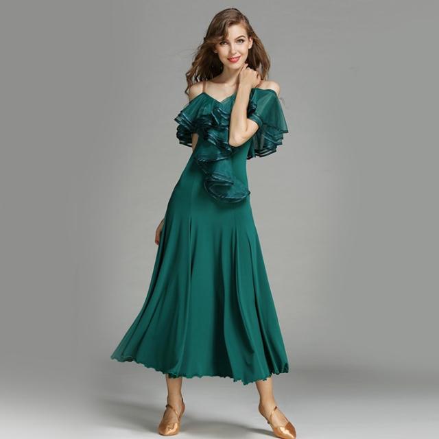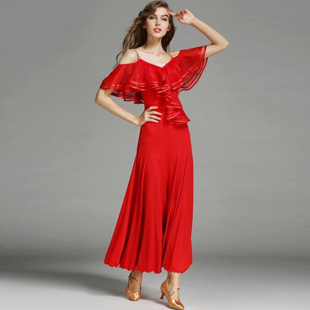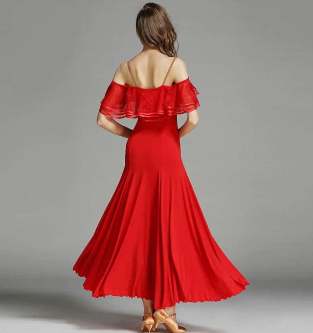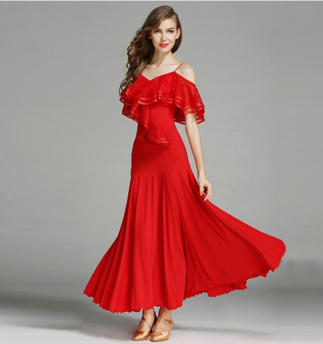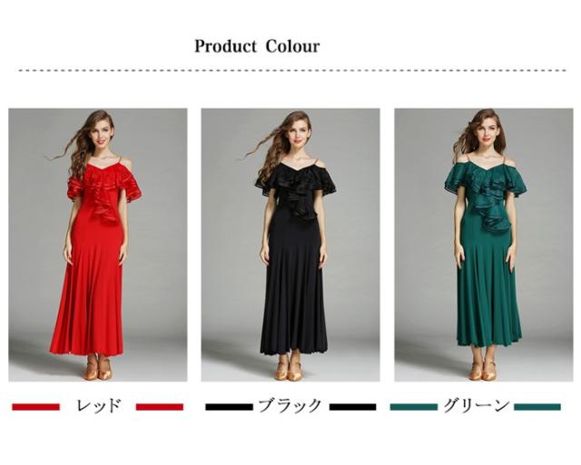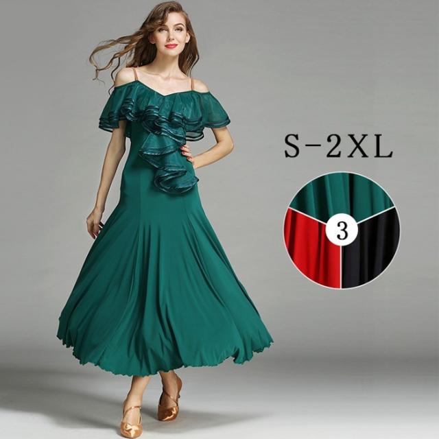 高品質 社交ダンス ドレス 社交ダンス衣装 初心者 練習着 広がる裾 発表会用 ワンピース パーティー スタンダード レッスン着 発表会 競技着 演出用 開場ドレス ワルツ専用ドレス ロング丈 オールシーズン ブラック レッド/グリーン S M L XL 2XL be198zbzbm5