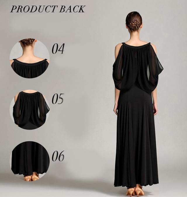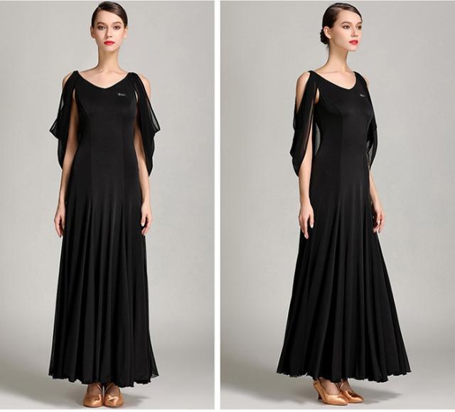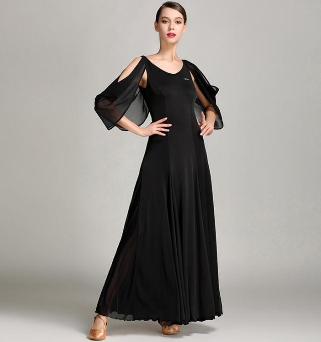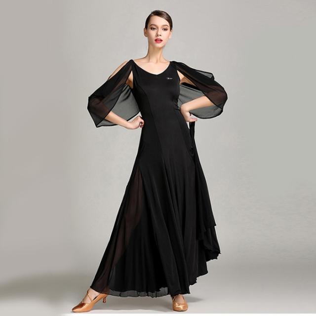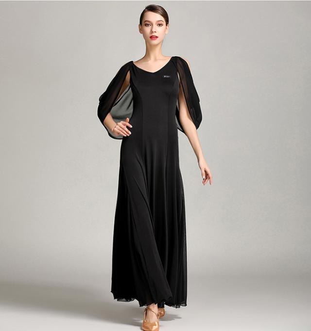 高品質 社交ダンス ドレス 社交ダンス衣装 長袖 黒 初心者 練習着 広がる裾 発表会用 ワンピース パーティー スタンダード レッスン着 発表会 競技着 演出用 開場ドレス ワルツ専用ドレス ロング丈 オールシーズン ブラック S M L XL 2XL be195zbzbm5