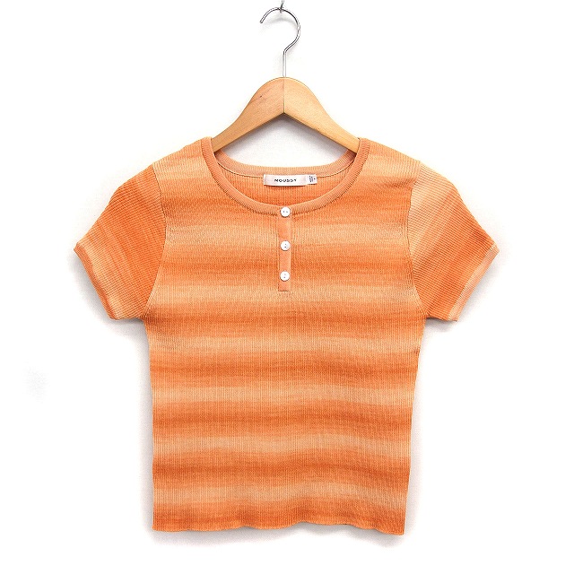 【中古】マウジー MOUSSY グラデーション ボーダー ニット セーター 半袖 ヘンリーネック F オレンジ系 /FT レディース