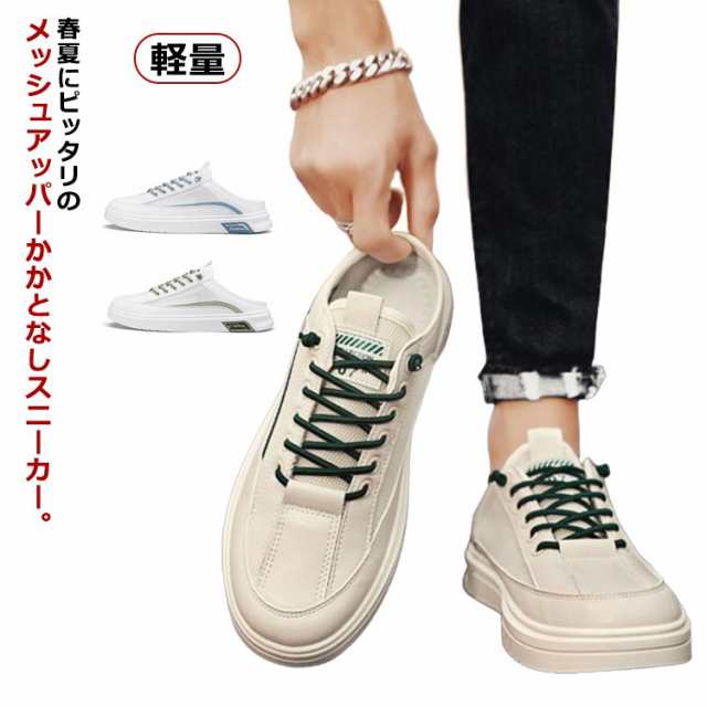 かかとなし スニーカー メッシュ スリッポン メンズ 靴 メッシュスニーカー サンダルスニーカー 軽量 レースアップ カジュアルスニーカー 歩きやすい 疲れない サボサンダル 春夏 コンフォート シューズ ウォーキングシューズ 男性 白