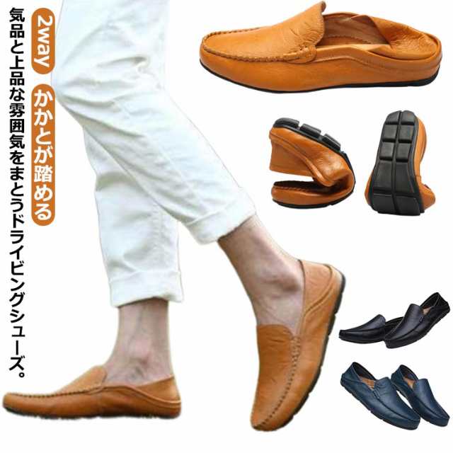 ローファー メンズ デッキ ドライビングシューズ 革靴 カジュアル スリッポン 男性用 2way かかとが踏める モカシン モカシンシューズ おしゃれ 大人 カジュアルシューズ セミフォーマル レザー ビジネス