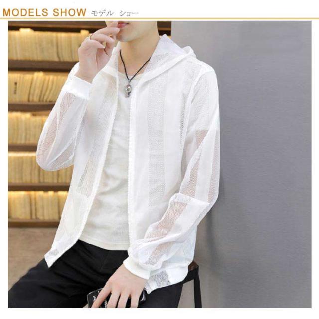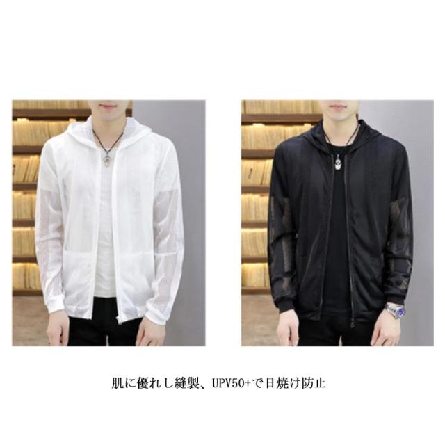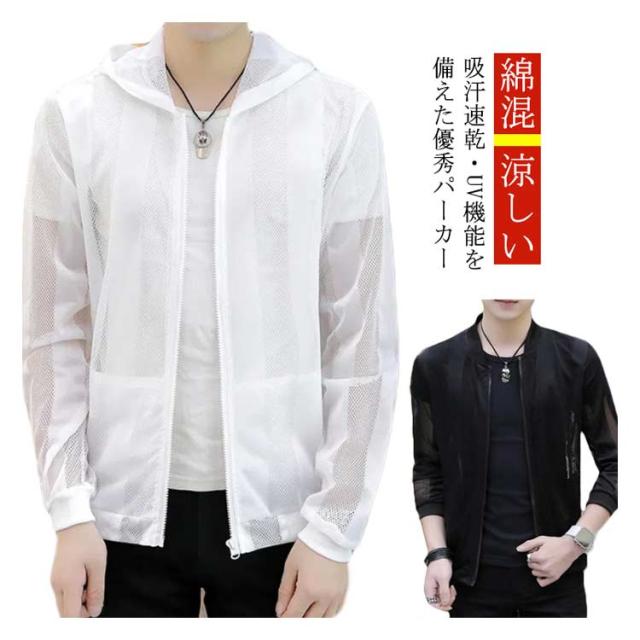 送料無料 UVカットパーカー UVパーカー メンズ 冷感 ひんやり 涼しい 接触冷感 UV カット UV対策 紫外線 対策 日焼け ジップアップ 綿混 トップス ロング丈 長袖 フード付き アウター カーディガン 夏 水着 体型カバー