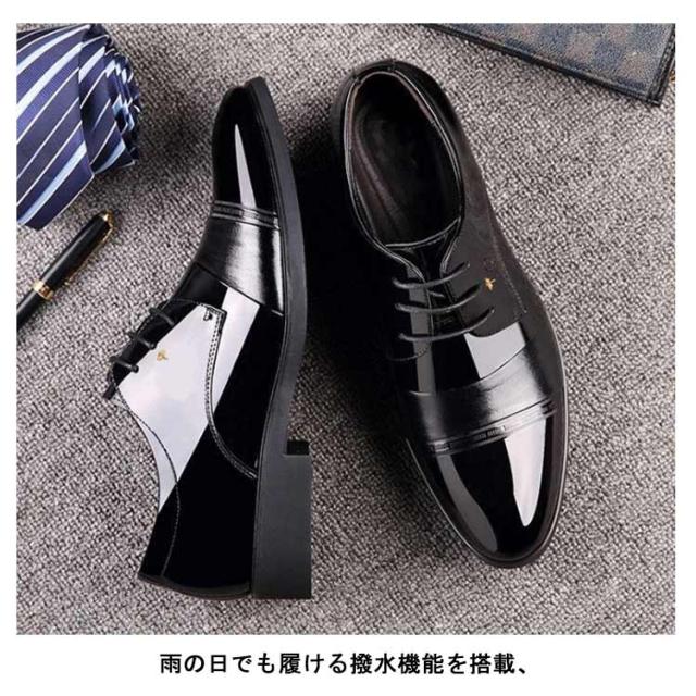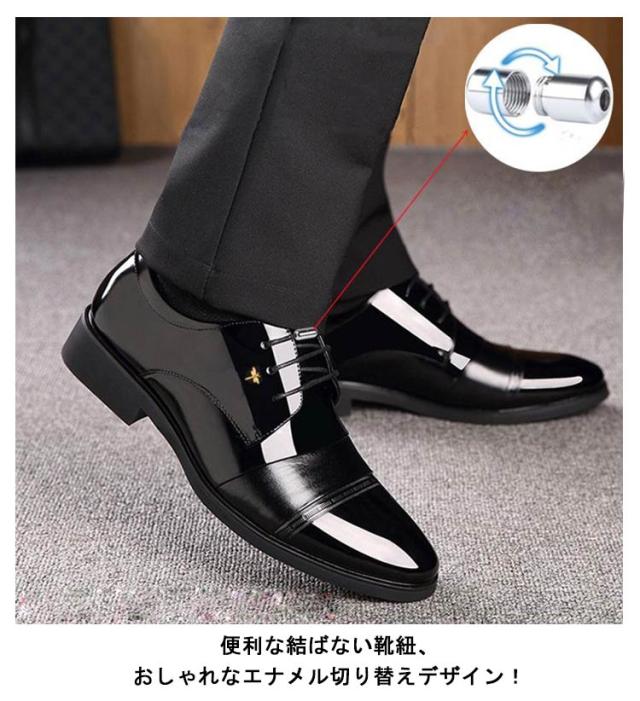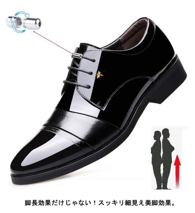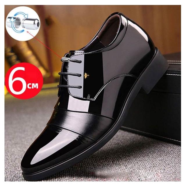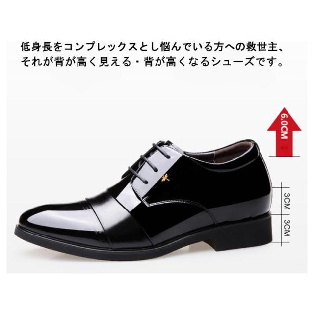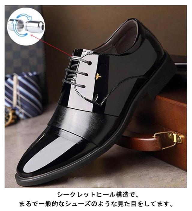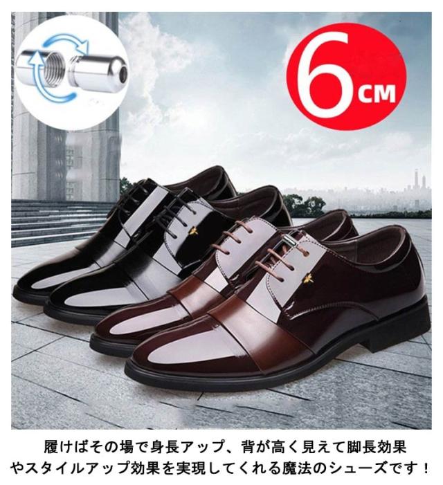 6cmUP!シークレットシューズ メンズ ビジネスシューズ 背が高くなる靴 ヒールアップシューズ シークレットビジネスシューズ エナメル シークレット靴 メンズ靴 メンズシューズ 結ばない 靴紐 フォーマル 合皮 通勤 通学 就活 商談 父の日 ギフト
