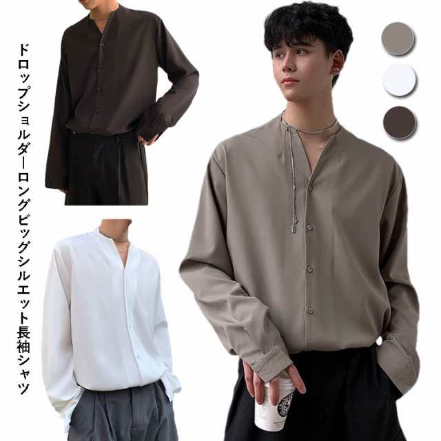 ビッグシルエット シャツ 長袖シャツ メンズ 大きいサイズ ビッグサイズ ビッグシャツ ロング ロングシャツ 長袖 ドロップショルダー モード系 きれいめ ヴィジュアル系 ストリート 韓国 おしゃれ 個性的 衣装