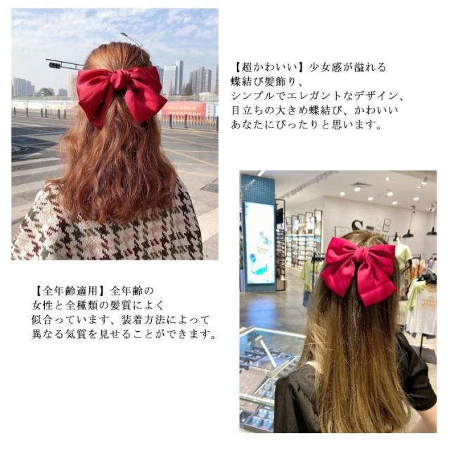 | 【超かわいい】少女感が溢れる蝶結び髪飾り、シンプルでエレガントなデザイン、目立ちの大きめ蝶結び、かわいいあなたにぴったりと思います。 【着脱簡単】合金スプリングクリップは千回以上の開閉テストを経て、高い耐久性を持つ、髪にしっかり固定できます。 【全年齢適用】全年齢の女性と全種類の髪質によく似合っています、装着方法によって異なる気質を見せることができます。 【使い方】普通のヘアピンや髪飾りとして使っては十分;若い女性へのプレゼントにはぴったりと思います。 | |