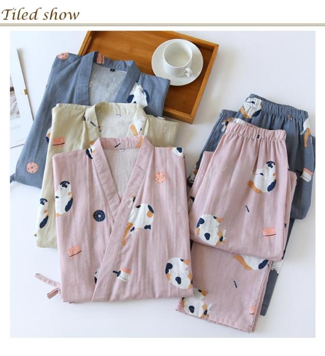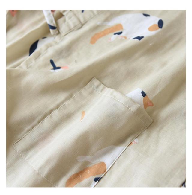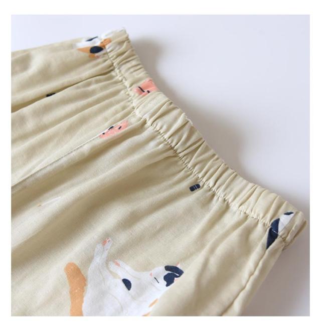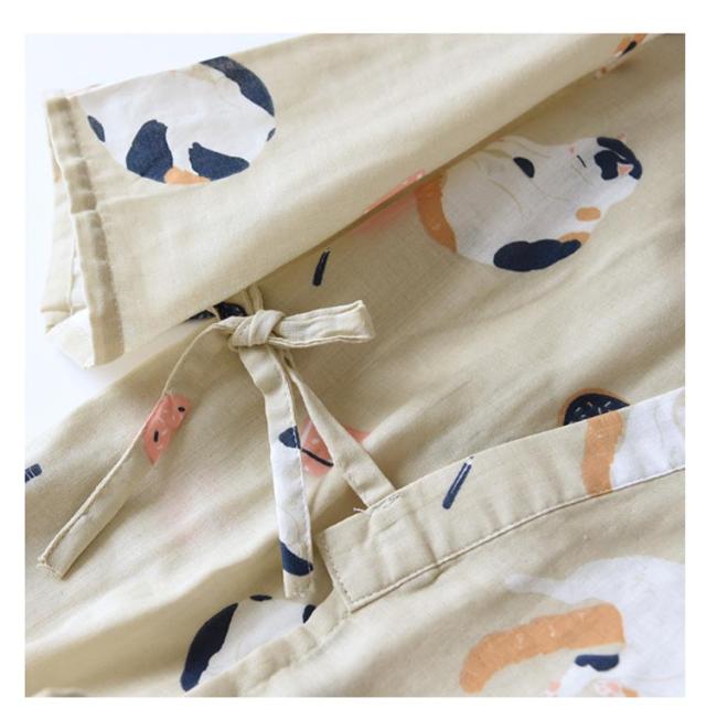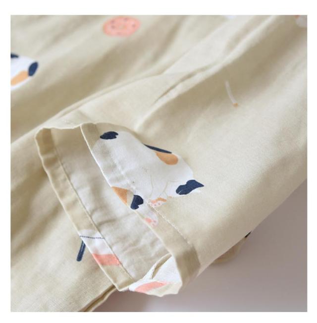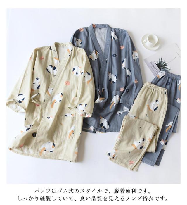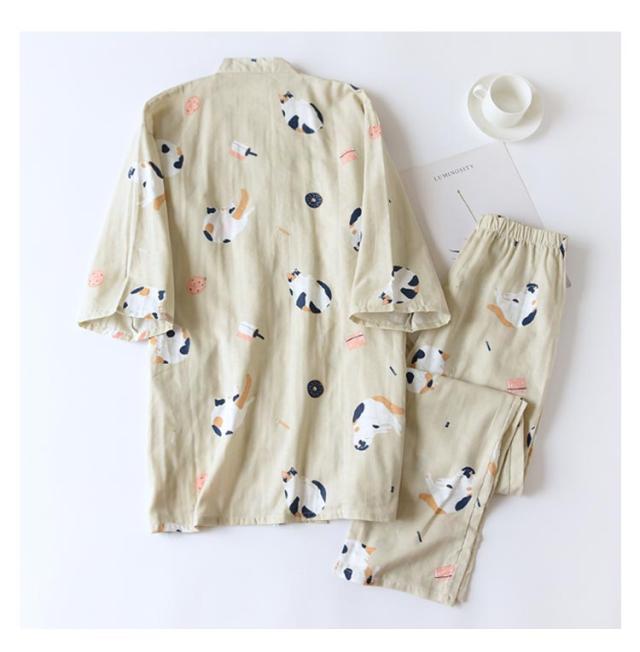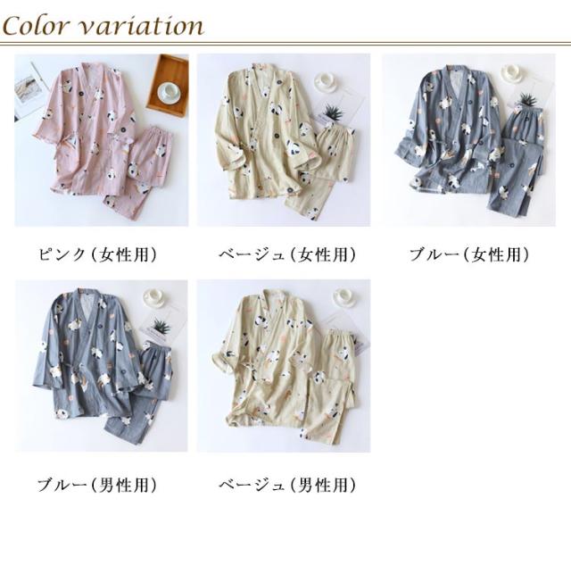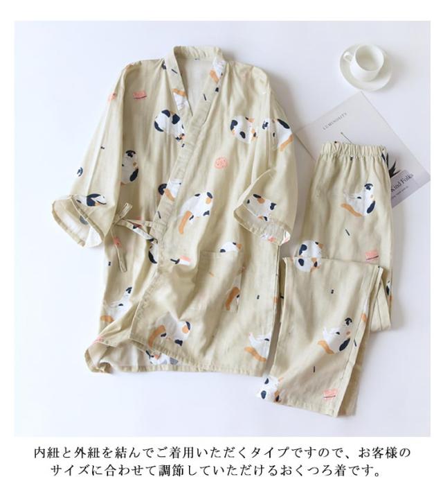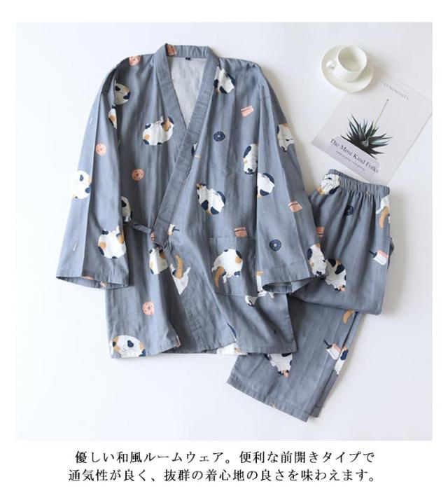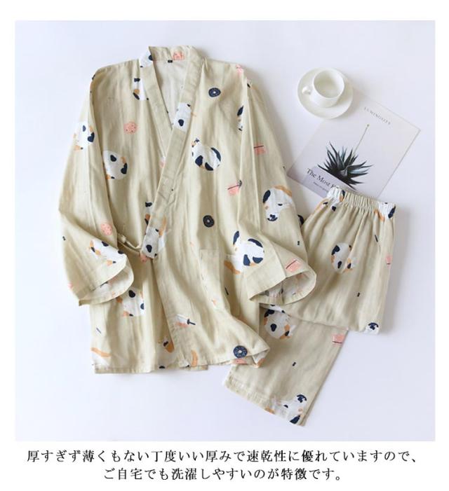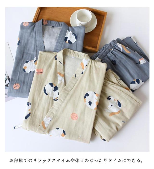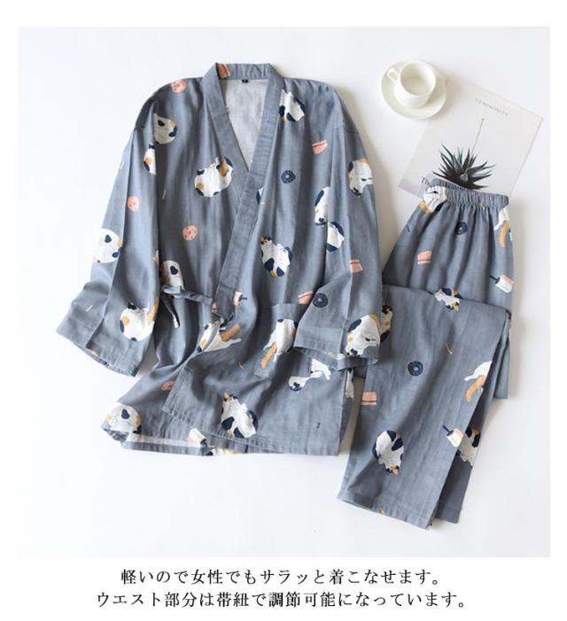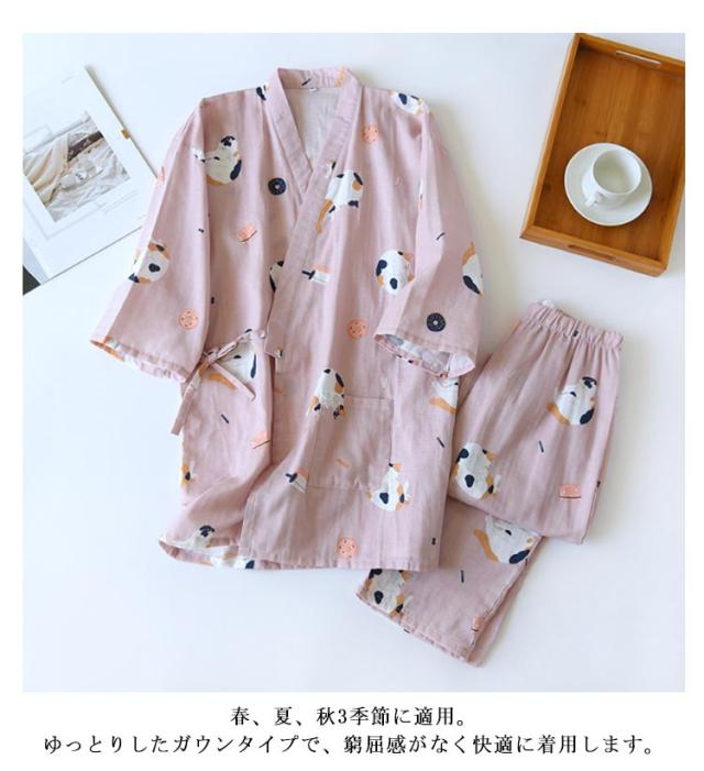 甚平 パジャマ レディース メンズ 七分袖 猫 ねこ柄 夏 ルームウェア スウェット 綿100 コットン パジャマ 上下セット お揃いパジャマ ペアルック 薄手 和風 可愛い 春 夏 秋