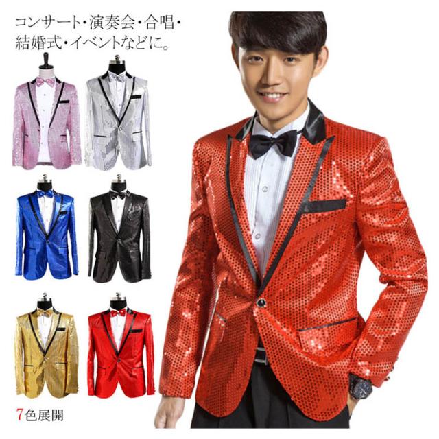 おまけ付き!ステージ 衣装 スパンコール ジャケット ステージ衣装 テーラードジャケット スーツ 蝶ネクタイ コスプレ ハロウィン メンズ 結婚式 宴会 パーティー 芸人 お笑い 衣装 出し物 手品 マジック 司会 演出服 ダンスウェア 団体服 合唱 コンサート