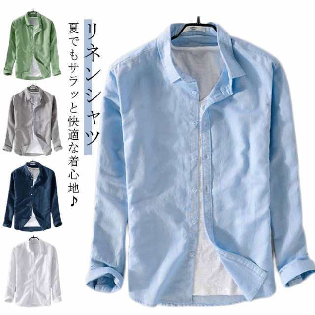 リネンシャツ メンズ 長袖シャツ 麻混 リネン メンズシャツ 涼しい 長袖 トップス リネンシャツ 綿麻シャツ 大きいサイズ カジュアルシャツ 白シャツ スリム 大人 ライトアウター 爽やか お出かけ 旅行 おしゃれ 父の日 プレゼント ギフト 送料無料