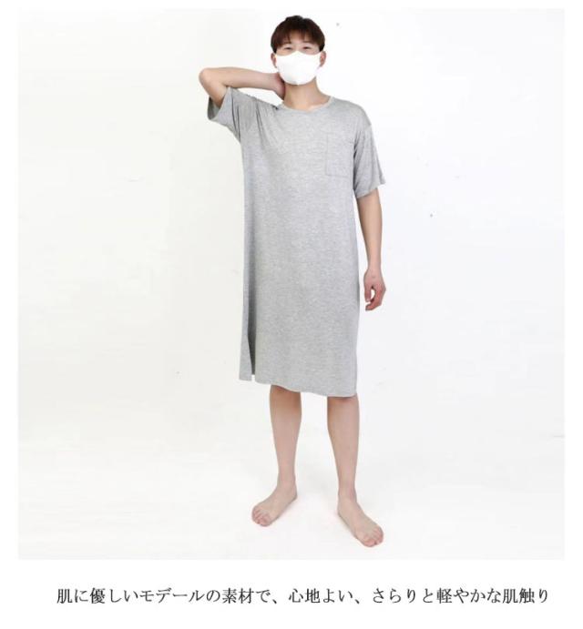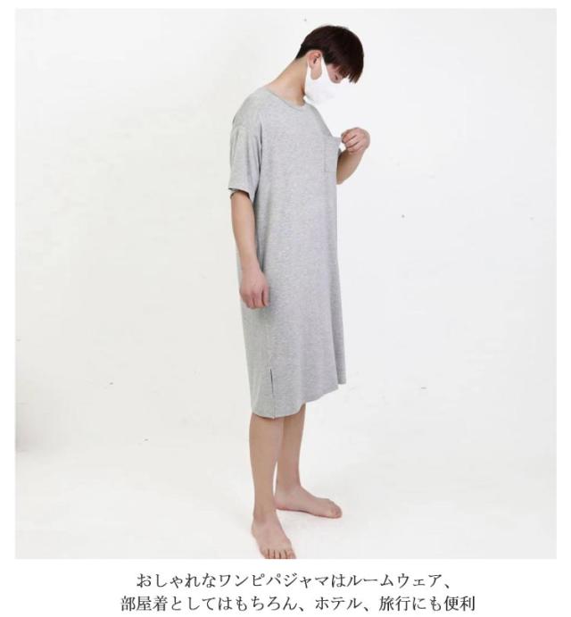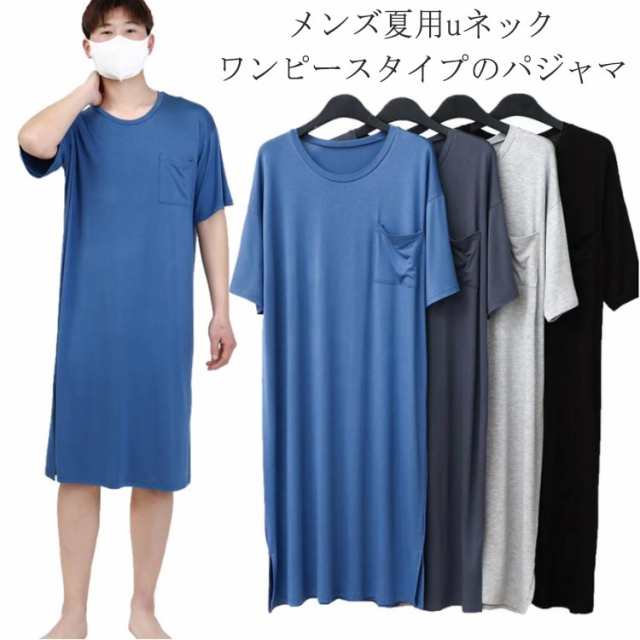 | メンズ夏用uネックワンピースタイプのパジャマ 肌に優しいモデールの素材で、心地よい、さらりと軽やかな肌触り おしゃれなワンピパジャマはルームウェア、部屋着としてはもちろん、ホテル、旅行にも便利 | |