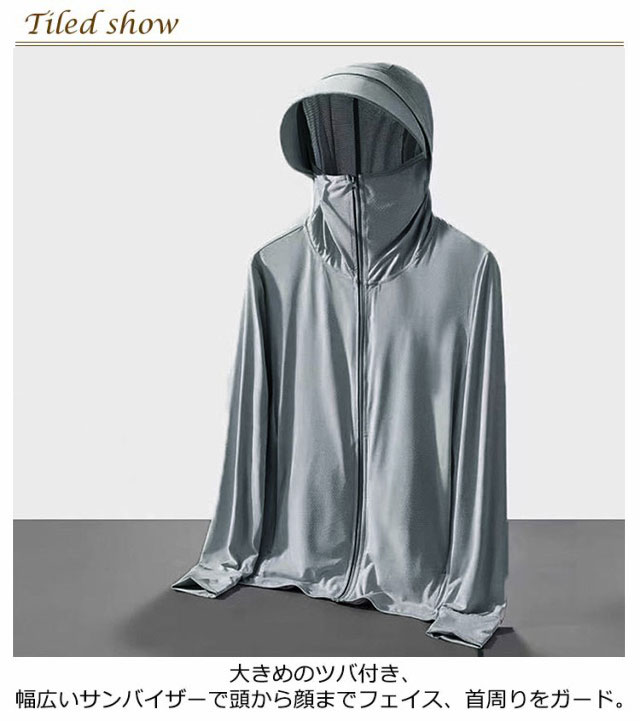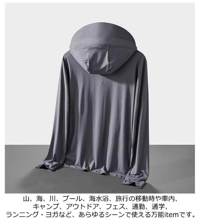 | M-4XL!接触冷感のある生地を使用し、薄手でしっかりUVカットできるパーカー。 大きめのツバ付き、幅広いサンバイザーで頭から顔までフェイス、首周りをガード。 薄手でとっても軽い素材使い、コンパクトにたためて、旅行や持ち運びにも便利。 汗を吸収してすばやく発散、サラサラの肌触りが持続できます。 山、海、川、プール、海水浴、旅行の移動時や車内、キャンプ、アウトドア、フェス、通勤、通学、ランニング・ヨガなど、あらゆるシーンで使える万能itemです。 | |