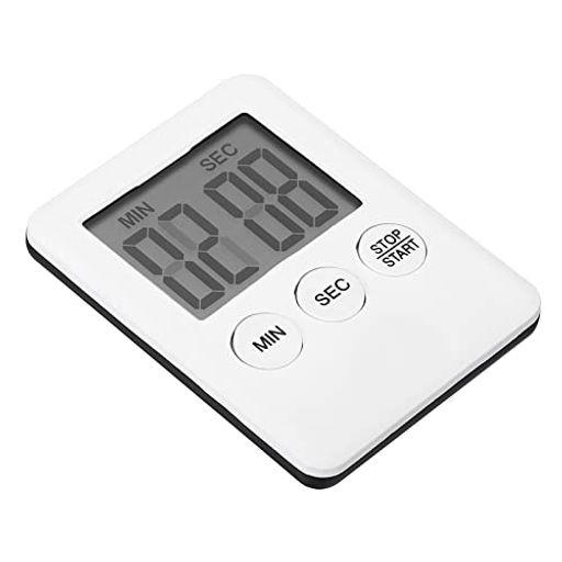 カラー:ホワイト;素材:プラスチック 磁気背面付き;サイズ:7 x 5.3 x 0.9cm(L x W x H);最長時間:99分59秒;パッケージコンテンツ:1個 x タイマー LR1130ボタンバッテリー1個付き