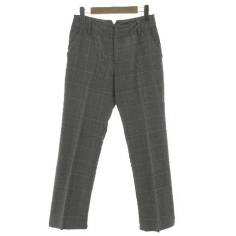 【中古】ニューヨーカー NEWYORKER パンツ ストレート バックシンチベルト グレンチェック グレー ライトグレー 7