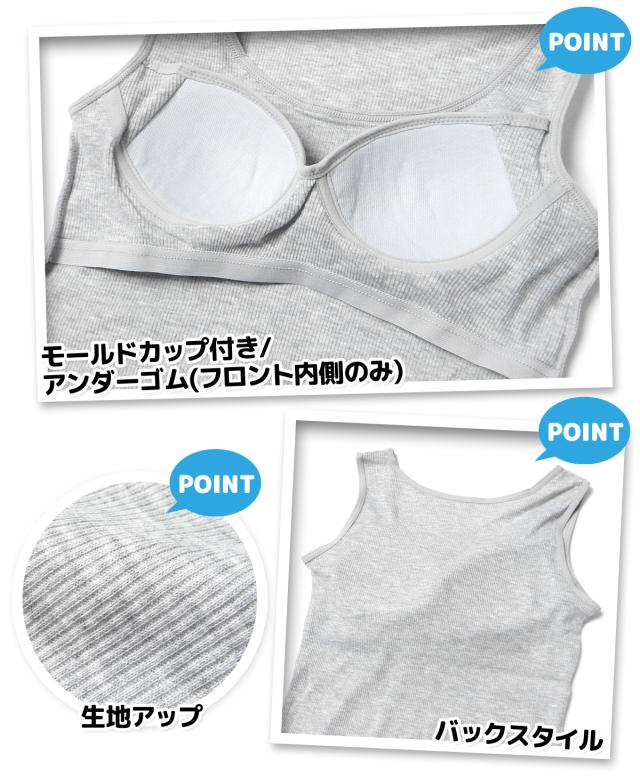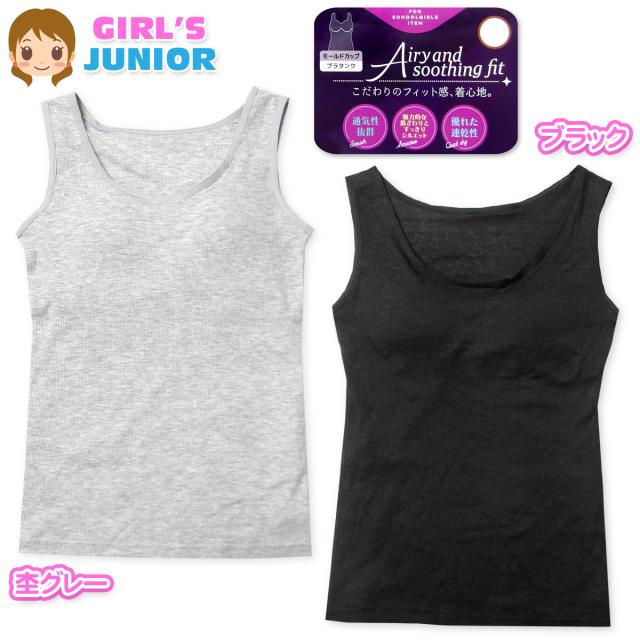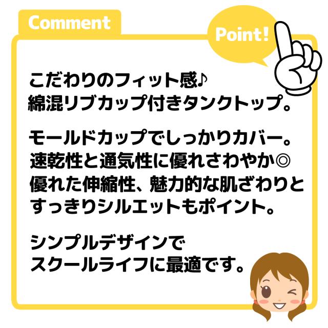 【送料無料】女児 ジュニア リブ タンクトップ モールドカップ付き 伸縮性 綿混 通気性 速乾性 肌着 下着 インナー 子供 女の子 140cm 150cm 160cm 165cm yg-2878【メール便対応】