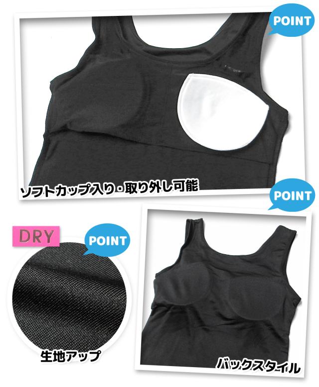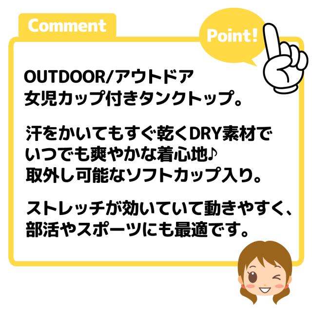 【送料無料】女児 ジュニア カップ付き タンクトップ OUTDOOR/アウトドア DRY素材 ストレッチ 肌着 下着 インナー 子供 女の子 140cm 150cm 160cm 165cm yg-2896【メール便対応】