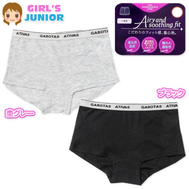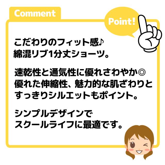【送料無料】女児 ジュニア リブ 1分丈 ショーツ 伸縮性 綿混 通気性 速乾性 肌着 下着 インナー 子供 女の子 140cm 150cm 160cm 165cm yg-2875【メール便対応】