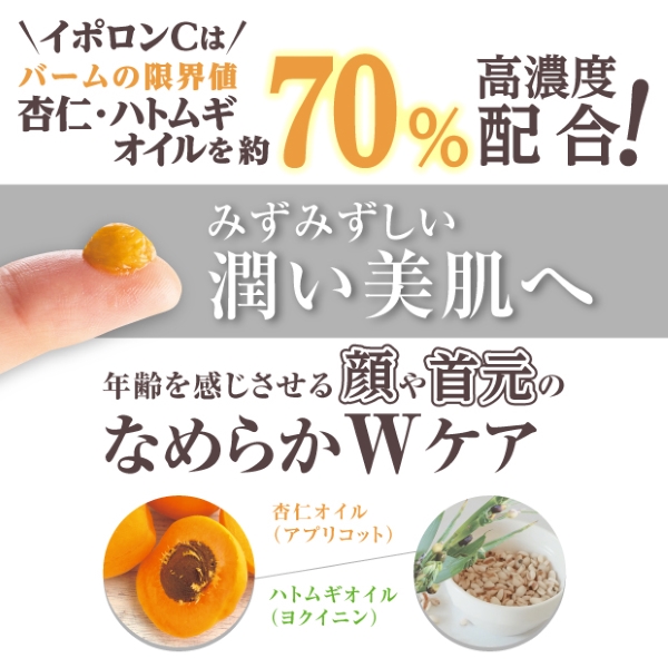 杏仁・ハトムギオイルをバームの限界値約70%高濃度配合イポロン C グリム バーム 杏仁オイル ハトムギオイル 酵素 美容 手軽 コスメ スキンケア 顔 こめかみ 生え際 首元 襟足 美肌 アスタキサンチン ヒアルロン酸 ダイズ油 スクワラン 美容成分 濃厚バーム 肌ケア 潤い ギフト 母の日 プレゼント