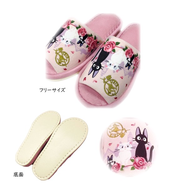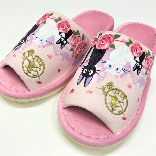 黒猫ジジが恋人の白猫リリーとデートを楽しむシーンがかわいい☆黒猫ジジのロマンチックなトイレシリーズ 『ジジとデート』スリッパ センコー 魔女の宅急便 ジジ 黒猫 猫 ネコ バラ 薔薇 トイレ トイレ用品 スリッパ トイレスリッパ かわいい キャラクター ピンク 新生活
