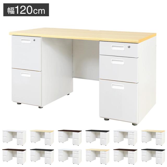 オフィスデスク 両袖机 本体ホワイト 袖箱 無地 スリム 幅1200×奥行600mm ワークデスク パソコンデスク 事務机 作業机 机 シンプル LRD-126 オフィスワーク デスク(代引不可)【送料無料】