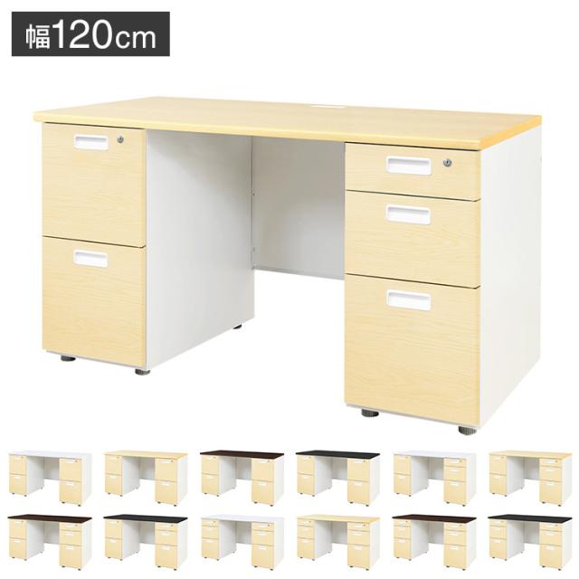 オフィスデスク 両袖机 本体ホワイト 袖箱 木目 スリム 幅1200×奥行600mm ワークデスク パソコンデスク 事務机 作業机 机 シンプル LRD-126-C オフィスワーク デスク(代引不可)【送料無料】