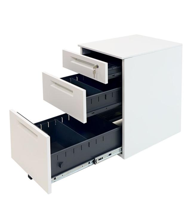 どんなデスクでも合わせやすい定番デザインのワゴンです。カラーはホワイトとブラックをご用意。オフィスやお部屋の雰囲気に合わせて選べます。