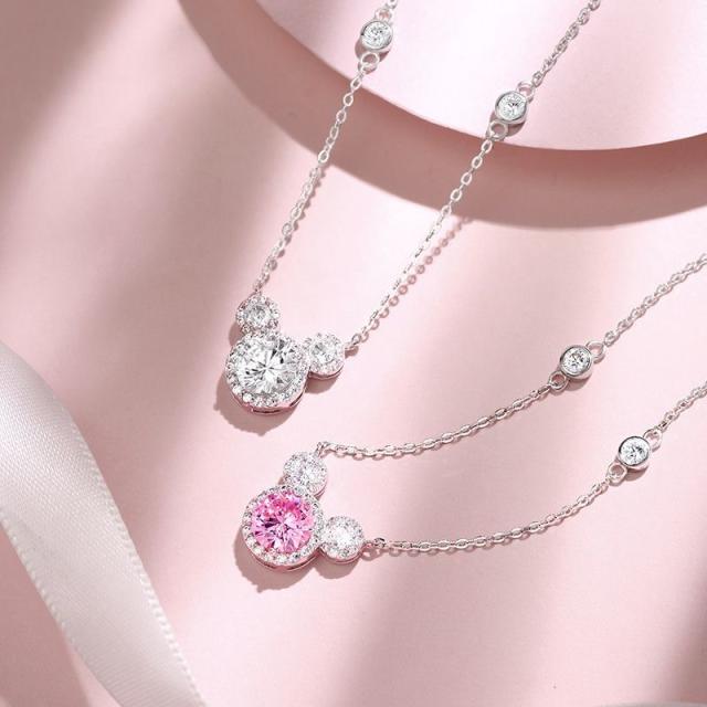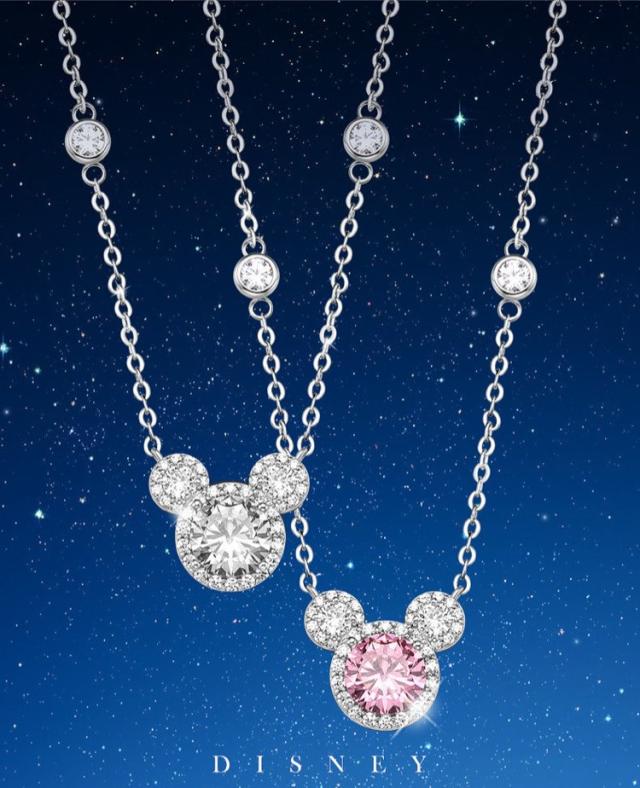 DiSneyディズニー記念ダイヤネックレス 2色ダイヤ 天然ジルコン ディズニー正規品シール付き 上海ディズニーランド記念ペンダント 彼女や女の子にプレゼント 奥さんにも最高