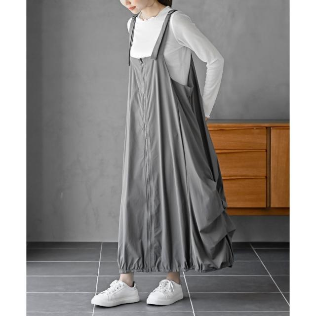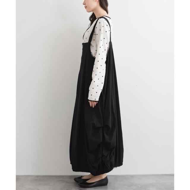 サイドのタックが作り出すボリュームたっぷりのデザインが魅力のジャンパースカート。