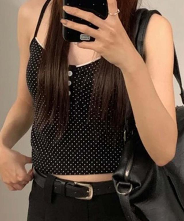 ドット柄ボタン付きキャミソール