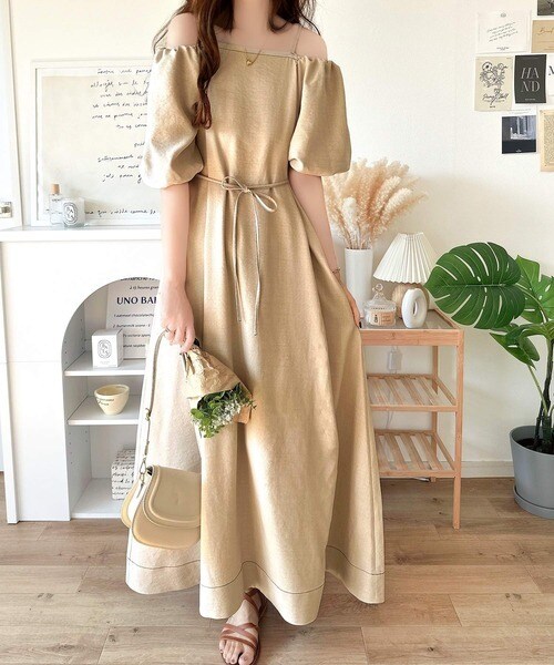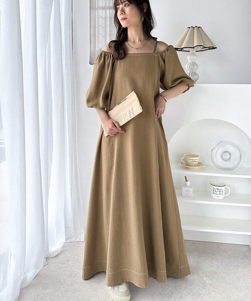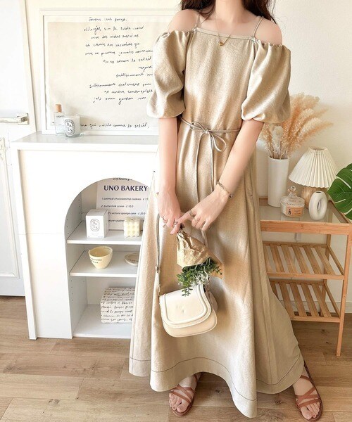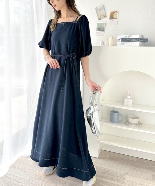 お洒落に差をつける、大人女子。2wayパフスリーブロング丈ワンピース