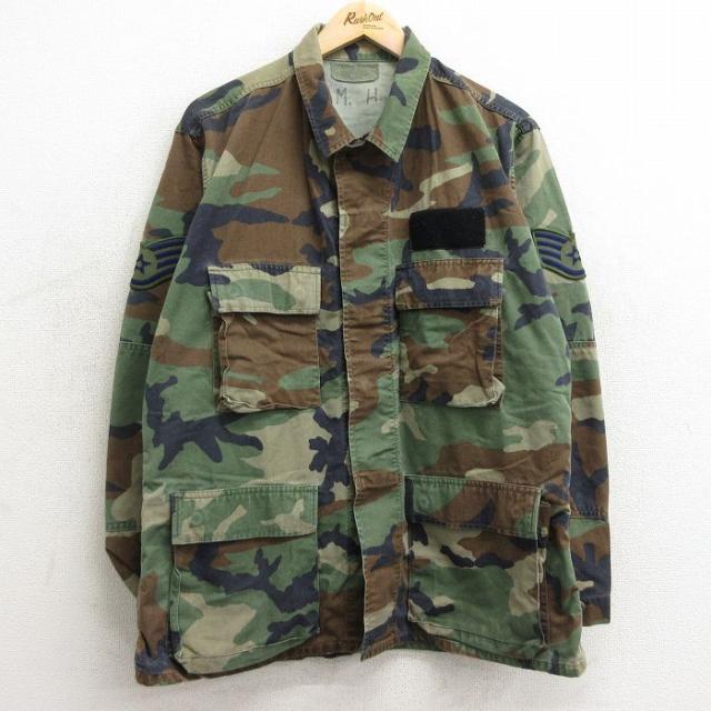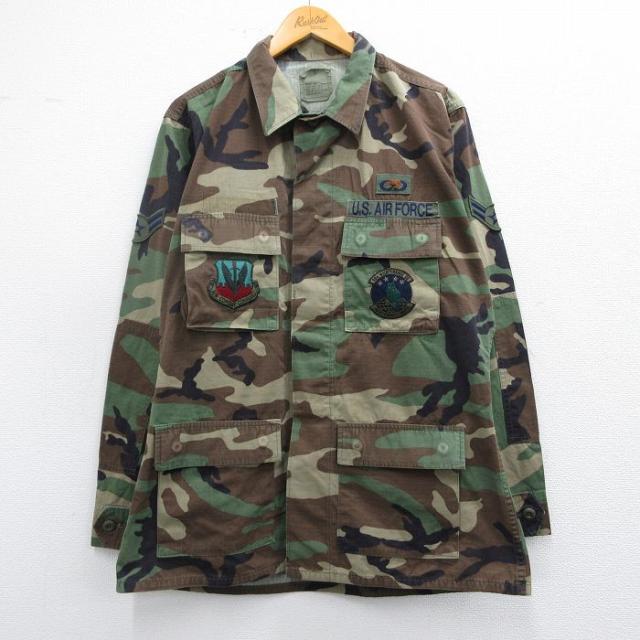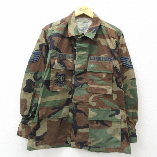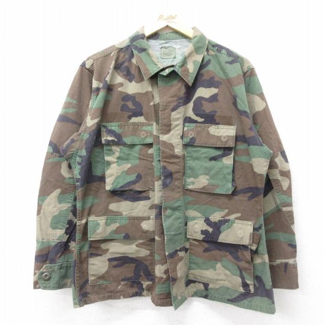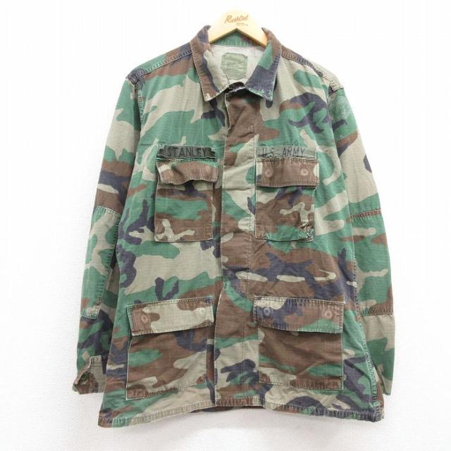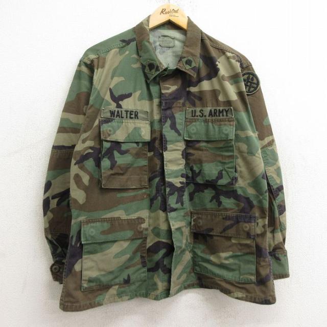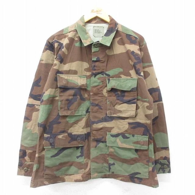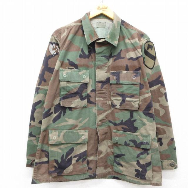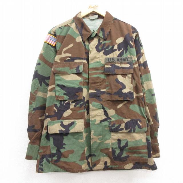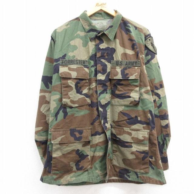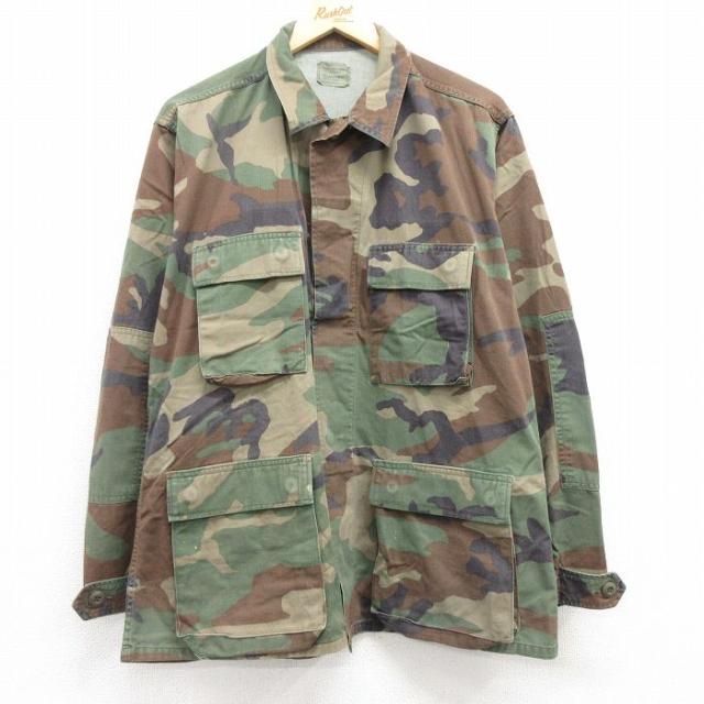古着 長袖 ミリタリー ジャケット メンズ 90年代 90s USアーミー コンバット ウッドランドカモ USA製 茶他 ブラウン 迷彩 Lサ 中古 古着