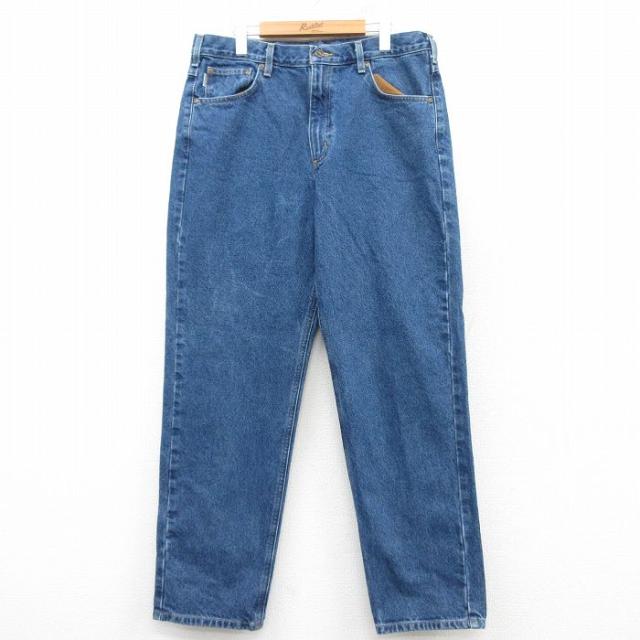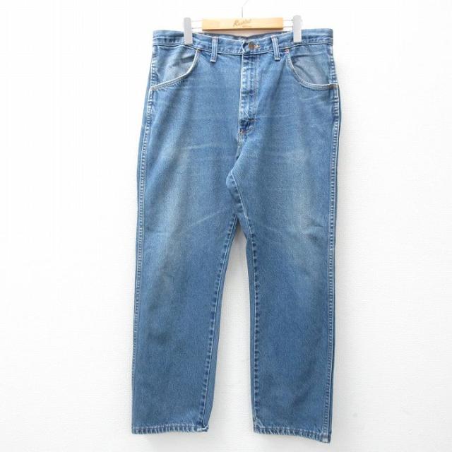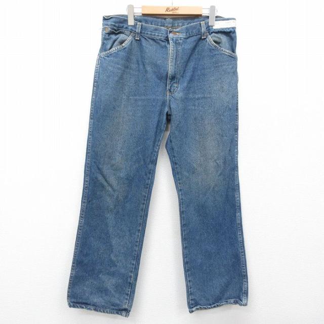 古着 ジーンズ メンズ ヒゲ 紺 ネイビー デニム W37 中古 ボトムス ジーパン Gパン ロング パンツ 中古 古着