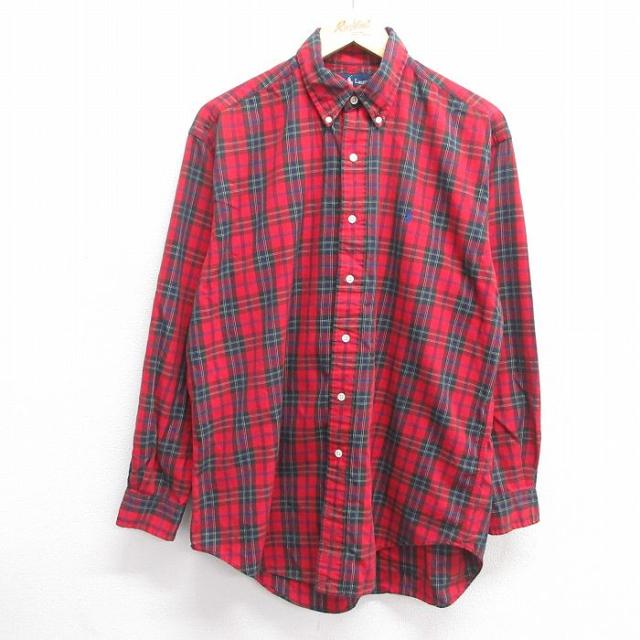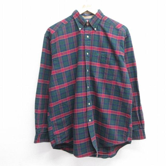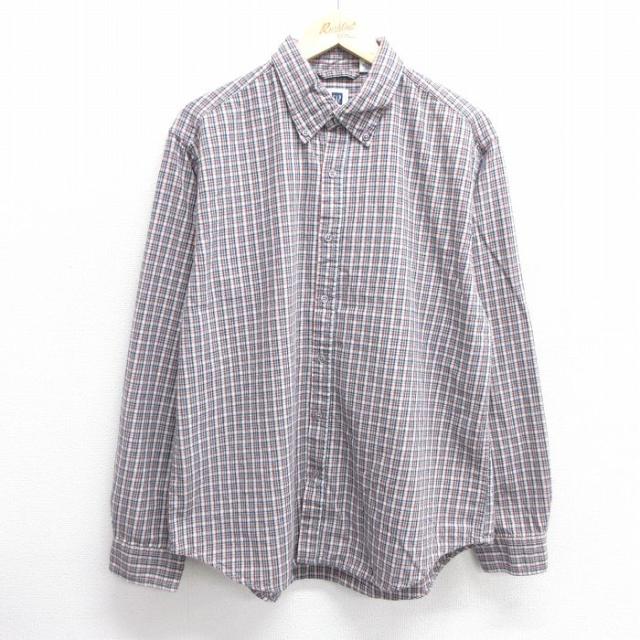 【商品名】 L★古着 アバクロンビー 長袖 ブランド シャツ メンズ ワンポイントロゴ コットン ボタンダウン 赤他 チェック
