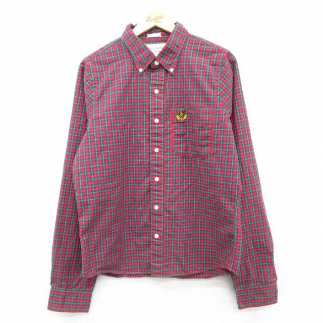 古着 アバクロンビー Abercrombie&fitch 長袖 ブランド シャツ メンズ ワンポイントロゴ コットン ボタンダウン 赤他 レッド 中古 古着