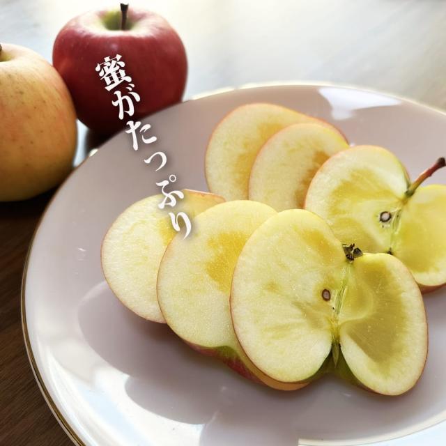 ハニーアップルの魅力はなんといっても蜜の量!!中身の8割を蜜で占めています。光に透かして見ると一目瞭然です。5mmくらいに輪切りして、ぜひ皮ごと食べてみることをオススメします!こうすると皮の酸味と果肉の甘みが丁度良いバランスとなるそうです。リンゴというよりはパイナップルを食べているような濃厚な味です。普通に皮を剥いて食べるのもおすすめ。香りが素晴らしく良いです。蜜の入り具合や味わいや玉揃いには個体差やばらつきがあります。