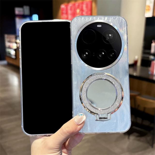 Xiaomi 15 Ultra ケース カバー TPU ソフトケース ミラー付き シェル柄 分離型スマホリング付き スタンド機能 角 保護 コーナーバンパー ストラップ穴 きらきら かわいい 可愛い お洒落 グリッター 小米 シャオミ 15 ウルトラ おすすめ おしゃれ
