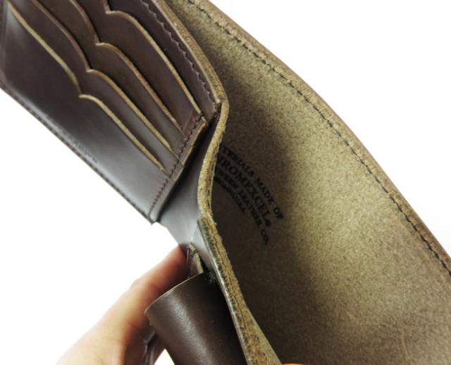 シンプルな構成の二つ折り財布にクロムエクセルレザーを使い、
