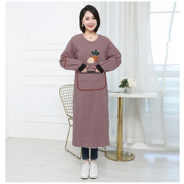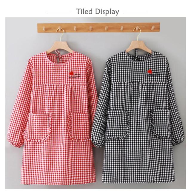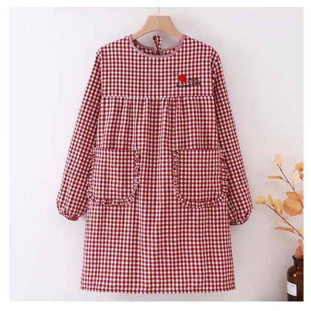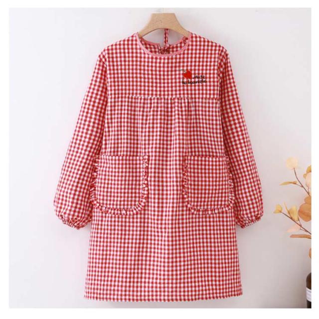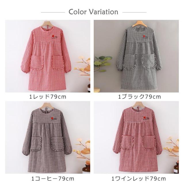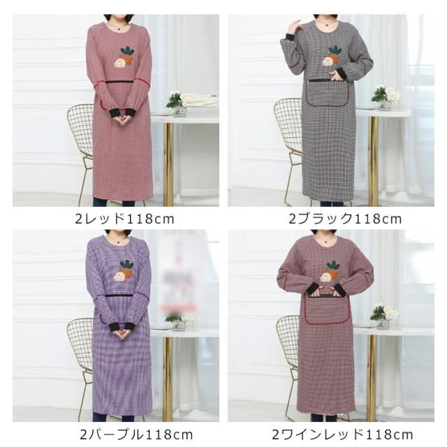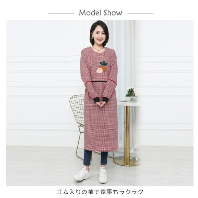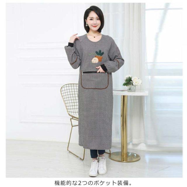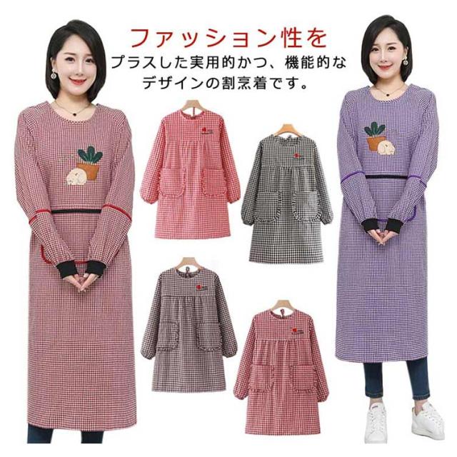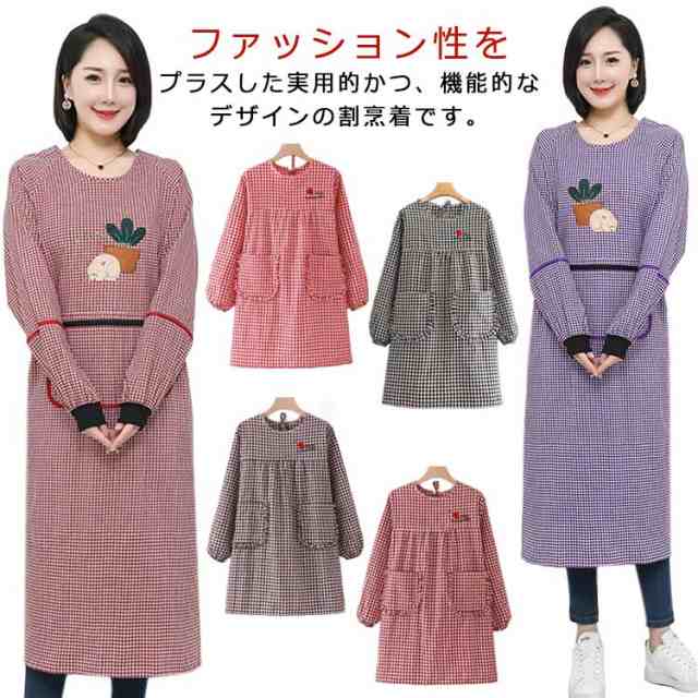 チェック柄 エプロン 袖付き かっぽう着 北欧 レディース 40代 長袖 かっぽうぎ おしゃれ キッチン ロング丈 割烹着 20代 保育士 30代 家事 カジュアル カフェ 北欧風 ポケット付き 割烹着 綿 かわいい 送料無料 母の日 敬老の日 ギフト