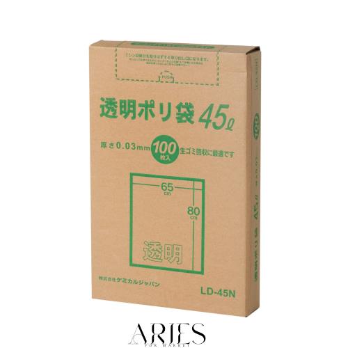 ◆商品名:ケミカルジャパン ゴミ袋 透明ポリ袋 45L BOX 100枚入 LD-45N