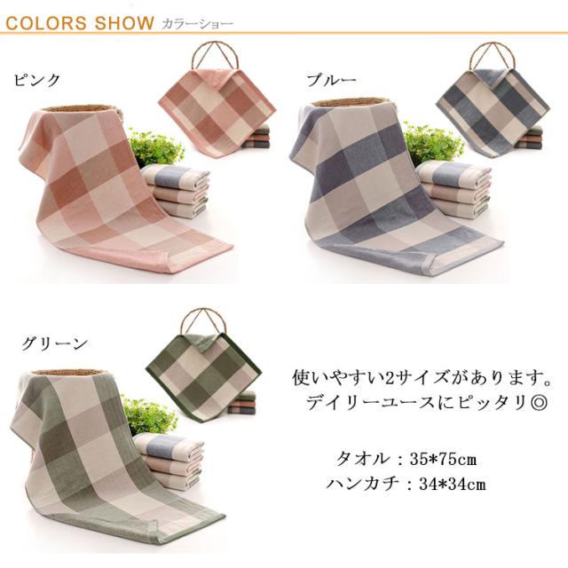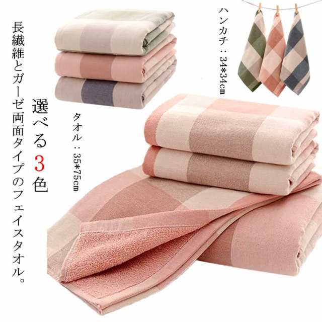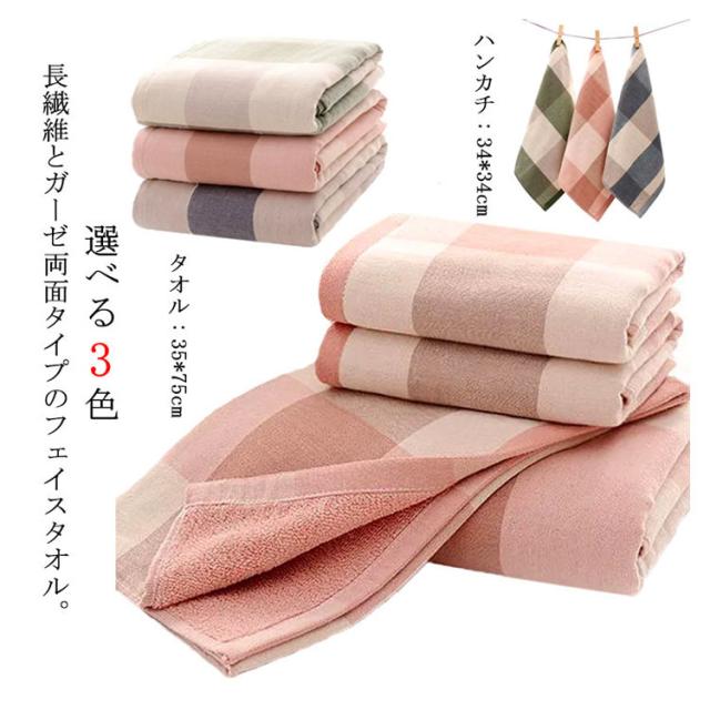 タオル フェイスタオル チェック柄 100%綿 総柄 ガーゼ ハンカチ 大人用 厚手 吸水 1枚 ヘアドライタオル デイリータオル 肌に優しい 起毛 人気 シンプル 男性 女性 ペア キッズ 子供用