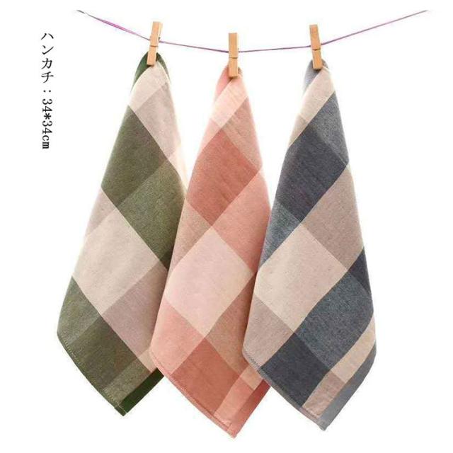 【送料無料】タオル フェイスタオル チェック柄 100%綿 総柄 ガーゼ ハンカチ 大人用 厚手 吸水 1枚 ヘアドライタオル デイリータオル 肌に優しい 起毛 人気 シンプル 男性 女性 ペア キッズ 子供用