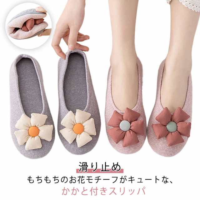 可愛い スリッパ 花モチーフ 入院 靴 滑り止め ルームシューズ かかと スリッパ スリッポン おしゃれ かかと付き 婦人 学校 レディース くつ シューズ 人気 マタニティ 産後 上履き 洗える