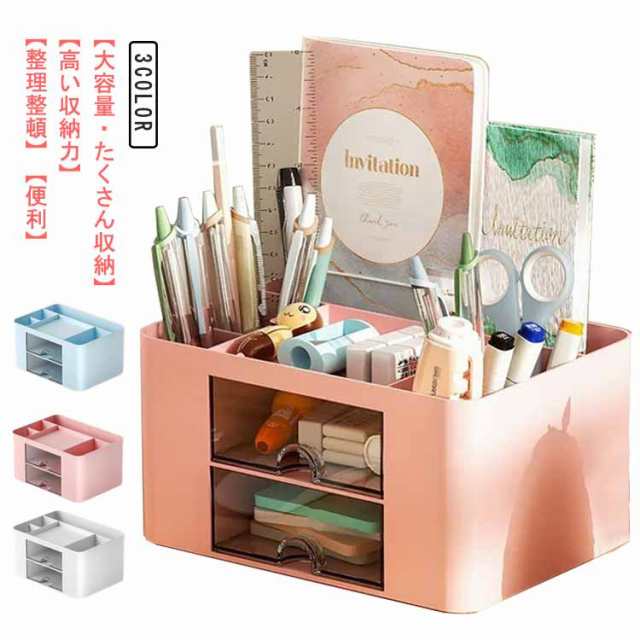 ペン立て 整理 収納ボックス 卓上収納ボックス 整頓 引き出し デスク周り 卓上 文房具 収納ケース 小物収納 便利 化粧品収納 ラスチック 大容量 おしゃれ