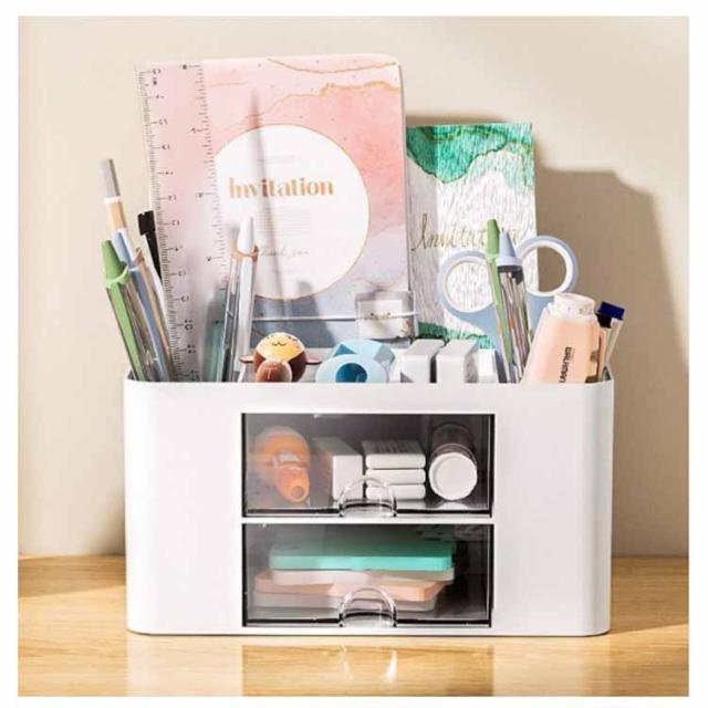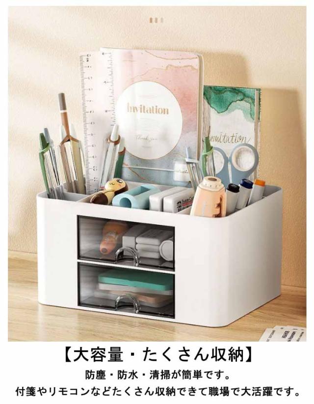 | 【大容量・たくさん収納】防塵・防水・清掃が簡単です。付箋やリモコンなどたくさん収納できて職場で大活躍です。 【高い収納力】たくさんのペンや、ハサミ、ホッチキス、体温計、ハンドクリーム、付箋、引き出しには消しゴムや子どものスタンプなど、たくさん収納できます。 【便利】ペン・はさみ・メモ帳・消しゴム・ホチキス・マステなど、すぐ手の届くところにひとまとめになり便利になりました。引き出しも指で引っかけてスムーズに出てきます。 【整理整頓】テーブルの上の整理整頓にちょうどいいです。大容量で机の上が綺麗に整理できます。 | |