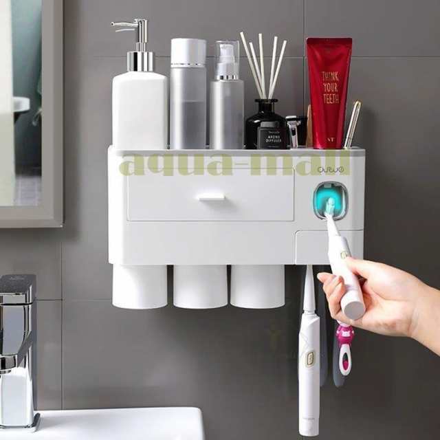歯ブラシスタンド 歯磨きコップ ホルダー 洗面台収納 一台多役 歯磨き粉ホルダー バスルーム収納 自動歯磨き粉チューブ 壁掛け 歯ブラシホルダー 粘着式