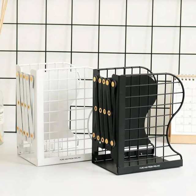 本立て ブックスタンド 卓上 折りたたみ 伸縮 丈夫 卓上収納 倒れない 多機能 事務用品 ブックエンド 雑誌 新聞 ファイル 書類入れ 金属製 おしゃれ ブラック ホワイト