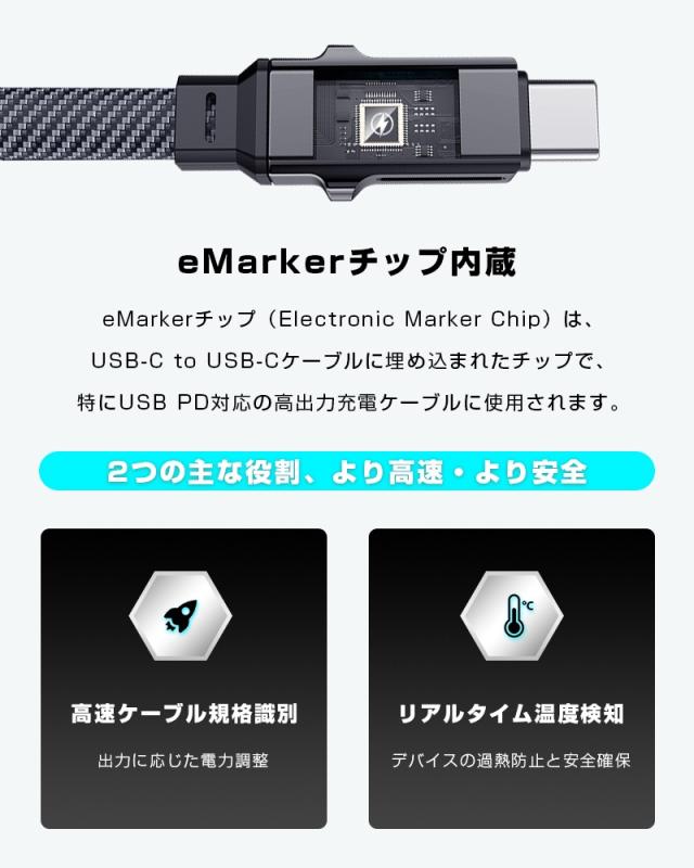 スマートチップeMarker内蔵で、安定した高速充電を提供し、充電中の過充電や発熱などを防止します。また、デジタル表示機能を搭載し、リアルタイムに電力数値を表示します。接続機器の充電状況が一目で確認できます。
